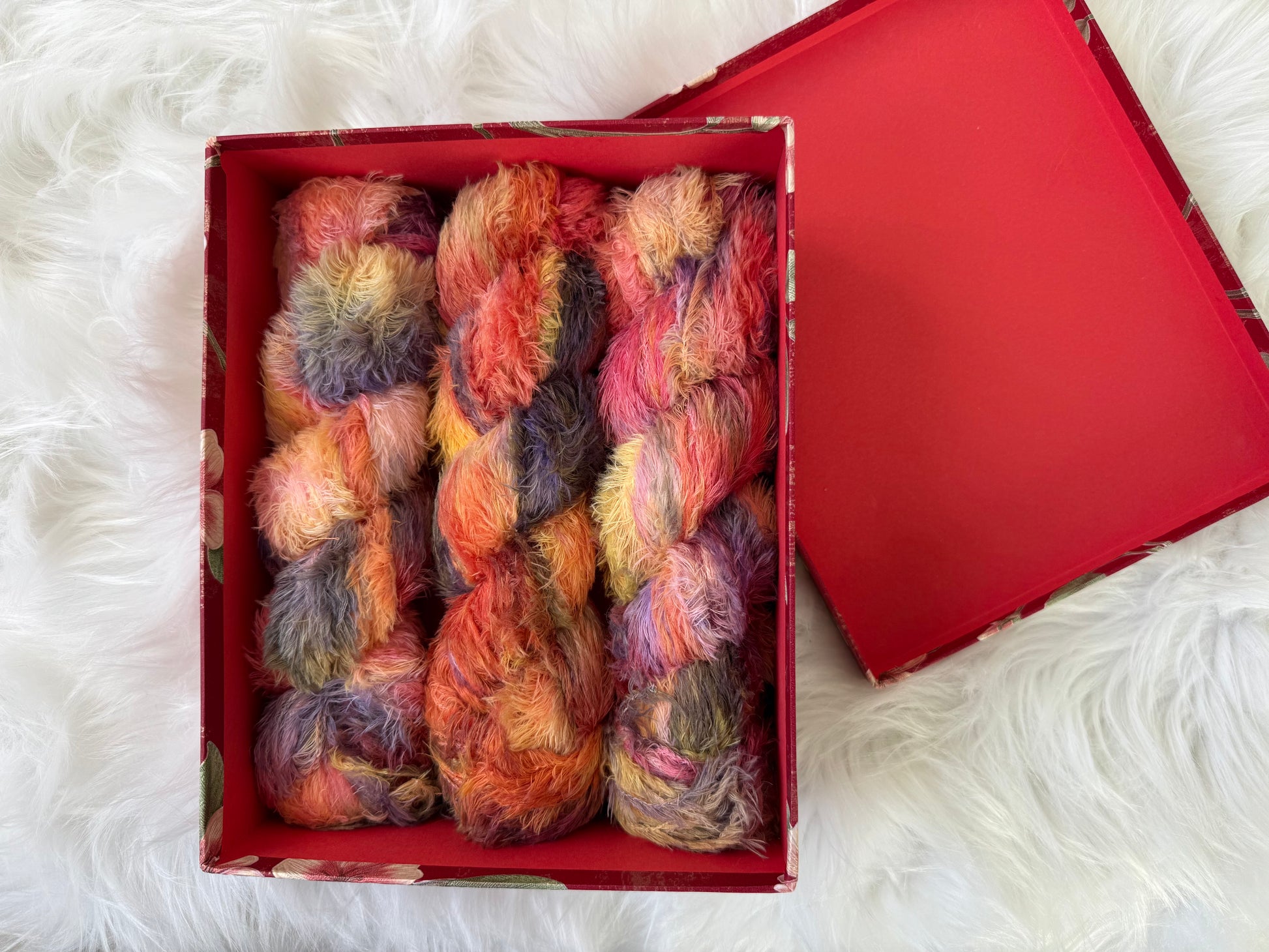 Hand dyed yarn 🔥 Colour: “Sunset Carnival” from the Dream Fuzz collection
